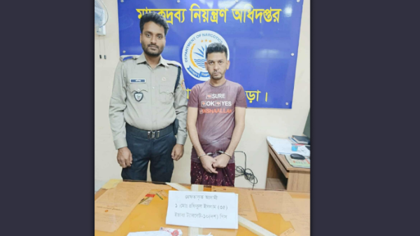 নিজস্ব প্রতিবেদক: বগুড়ায় ১০ পিচ ইয়াবা ট্যাবলেটসহ রফিকুল ইসলাম (৩৫) নামের এক মাদক ব্যবসায়ীকে গ্রেফতার করা হয়েছে। মঙ্গলবার (১৮ নভেম্বর) দুপুর পৌনে তিনটার দিকে ডিএনসি বগুড়ার উপপরিচালক জিললুর রহমানের নেতৃত্বে