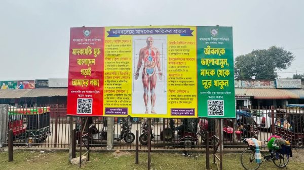 নিজস্ব প্রতিবেদক: মাদকবিরোধী জনসচেতনতা আরও জোরদার করতে বগুড়া জেলার সান্তাহার রেল স্টেশনে স্থাপিত মাদকবিরোধী স্লোগানসম্বলিত বিলবোর্ডে নতুন করে স্টিকার সংযোজন করেছে মাদকদ্রব্য নিয়ন্ত্রণ অধিদপ্তর (ডিএনসি) বগুড়া জেলা কার্যালয়। মঙ্গলবার (