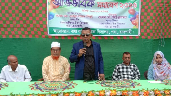 নিজস্ব প্রতিবেদক: রাজশাহীর বায়া বালিকা উচ্চ বিদ্যালয়ে অভিভাবক সমাবেশ অনুষ্ঠিত হয়েছে। রোববার অত্র বিদ্যালয় চত্তরে এ অভিভাবক সমাবেশ অনুষ্ঠিত হয়। বিদ্যালয়ের ম্যানেজিং কমিটির সভাপতি ওয়াদুদ হাসান পিন্টুর সভাপতিত্বে স্বাগত বক্তব্য