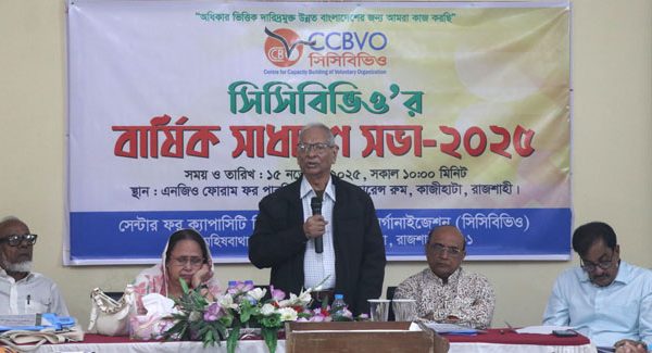 নিজস্ব প্রতিবেদক: সেন্টার ফর ক্যাপাসিটি বিল্ডিং অফ ভলান্টারি অর্গানাইজেশন (সিসিবিভিও)-এর বার্ষিক সাধারণ সভা-২০২৫ অনুষ্ঠিত হয়েছে। শনিবার (১৫ নভেম্বর ২০২৫) রাজশাহীর কাজীহাটাস্থ এনজিও ফোরাম ফর পাবলিক হেল্থের কনফারেন্স রুমে জাতীয় সঙ্গীত পরিবেশনের